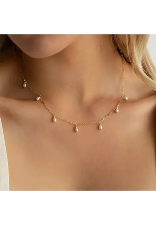 Delicate, effortless, and timeless. This 14K gold-plated stainless steel chain features dainty freshwater pearl drops for a soft, elegant touch.