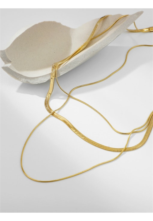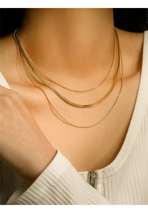 Sleek and oh so gorgeous , this 3 layer snake chain consists of 2 round snake chains and 1 flat snake chain.