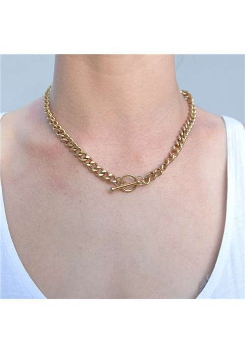 Gorgeous, statement chunky gold chain with front clasp detail.