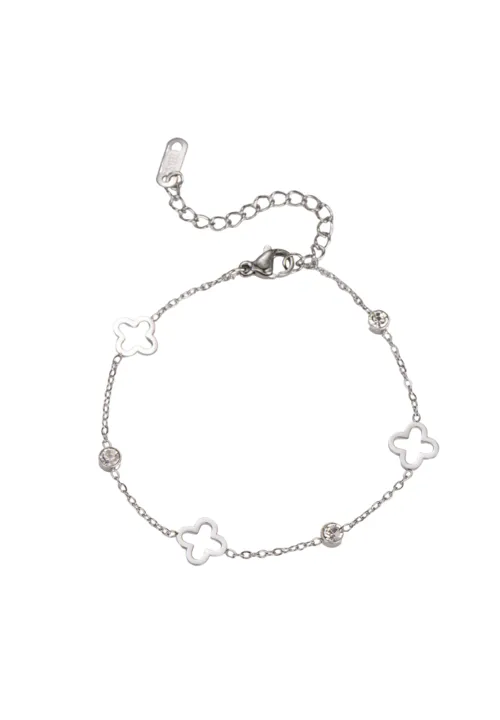 Dainty, delicate, and effortlessly chic. This silver bracelet features minimalist clover charms and subtle crystal accents—perfect for everyday wear or layering up.