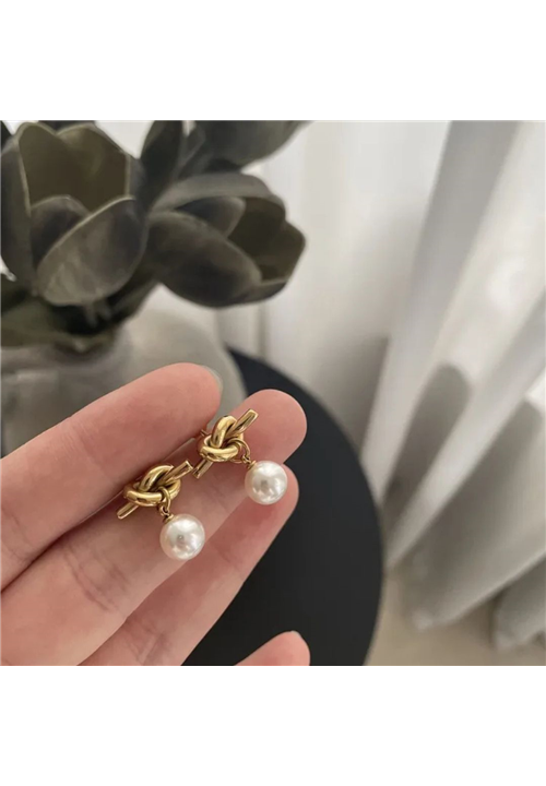 These gold knot studs with a dangling pearl bring effortless sophistication to any look.