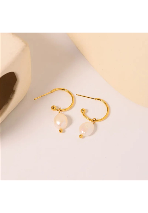 Timeless elegance with a modern twist. These delicate gold hoops feature a floating pearl for a chic look.